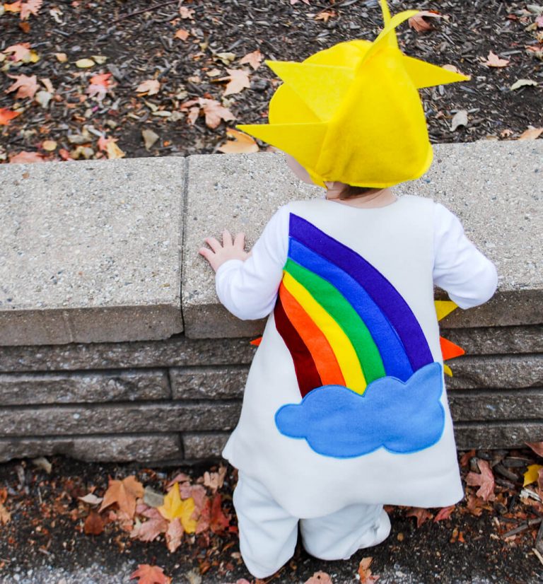 With this unique costume your child will shine! I love the bright colors and that can be layered over clothes!