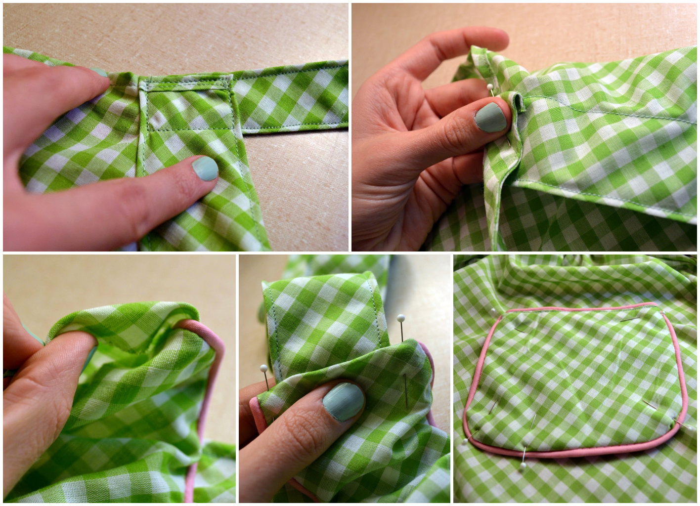 I love gingham fabric especially when it’s on the bias. I planned a whole gingham apron where everything is cut on the bias.