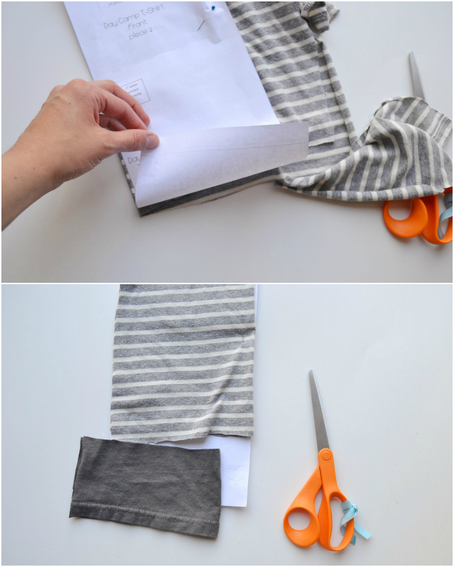 *I have an extra tip. I used part of the bottom of the shirt for another upcycle coming later in the series. This meant that the front of the shirt was shorter than the pattern. I still cut out the front and used a gray scrap to make up for what was missing.